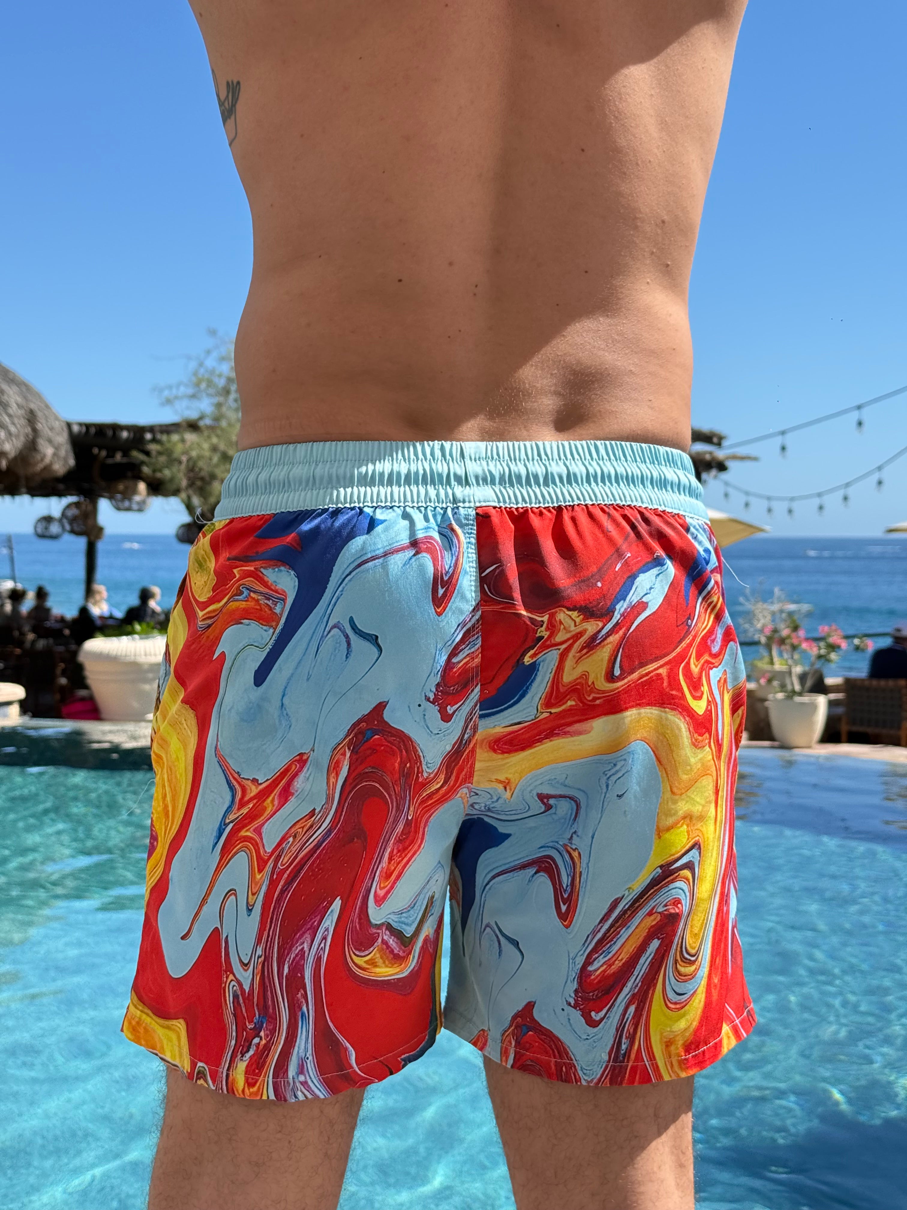 Each design is brilliantly colorful and resists fading from the sun, chlorine, or washing. Made of polyester and spandex fabric, these buttery soft garments are moisture wicking and stretch as you move.