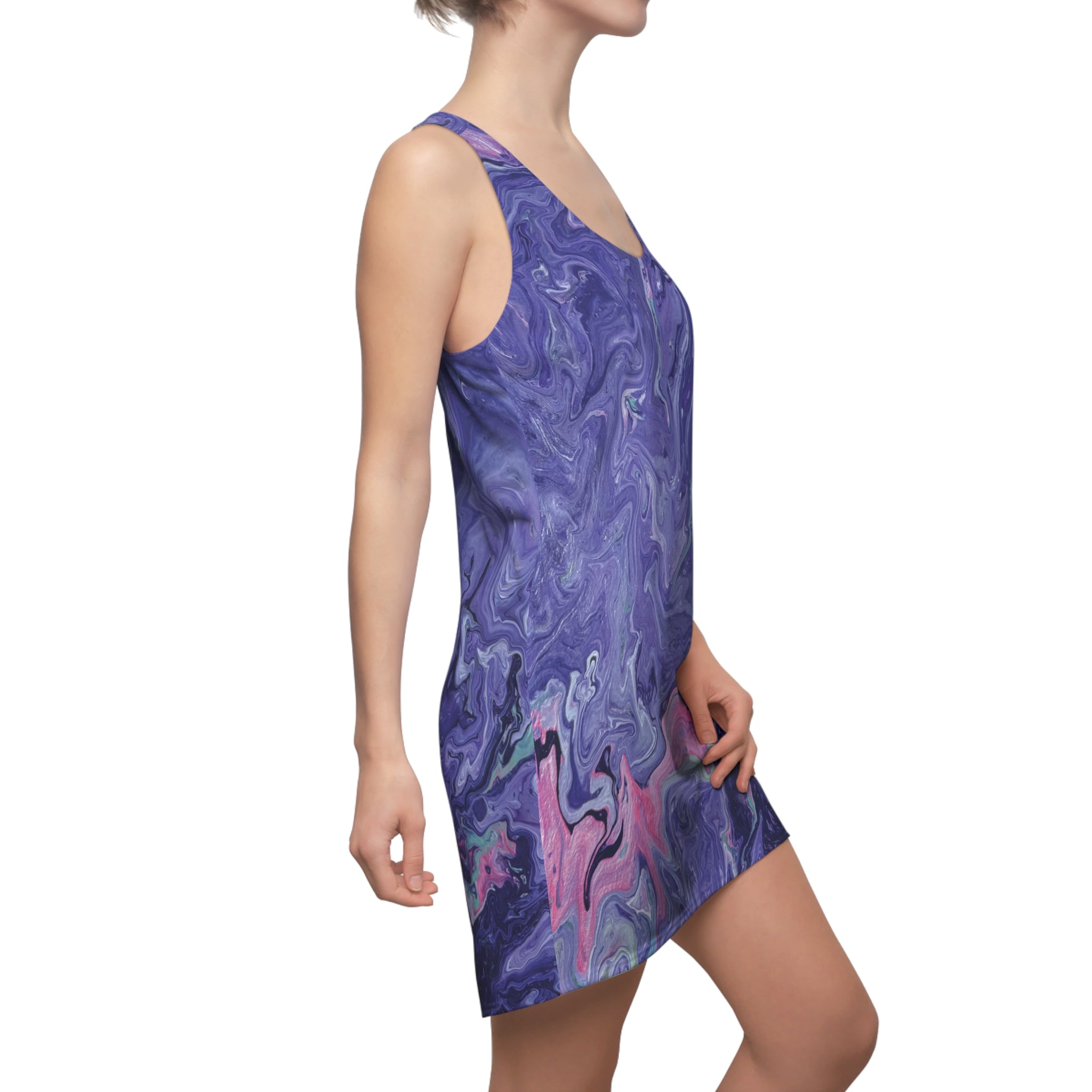 A feminine and stylish, yet really comfortable dress. This high quality AOP racerback dress is appealing from every angle. Inspired by the freedom of creativity, it will instantly become everyone's alltime favorite.