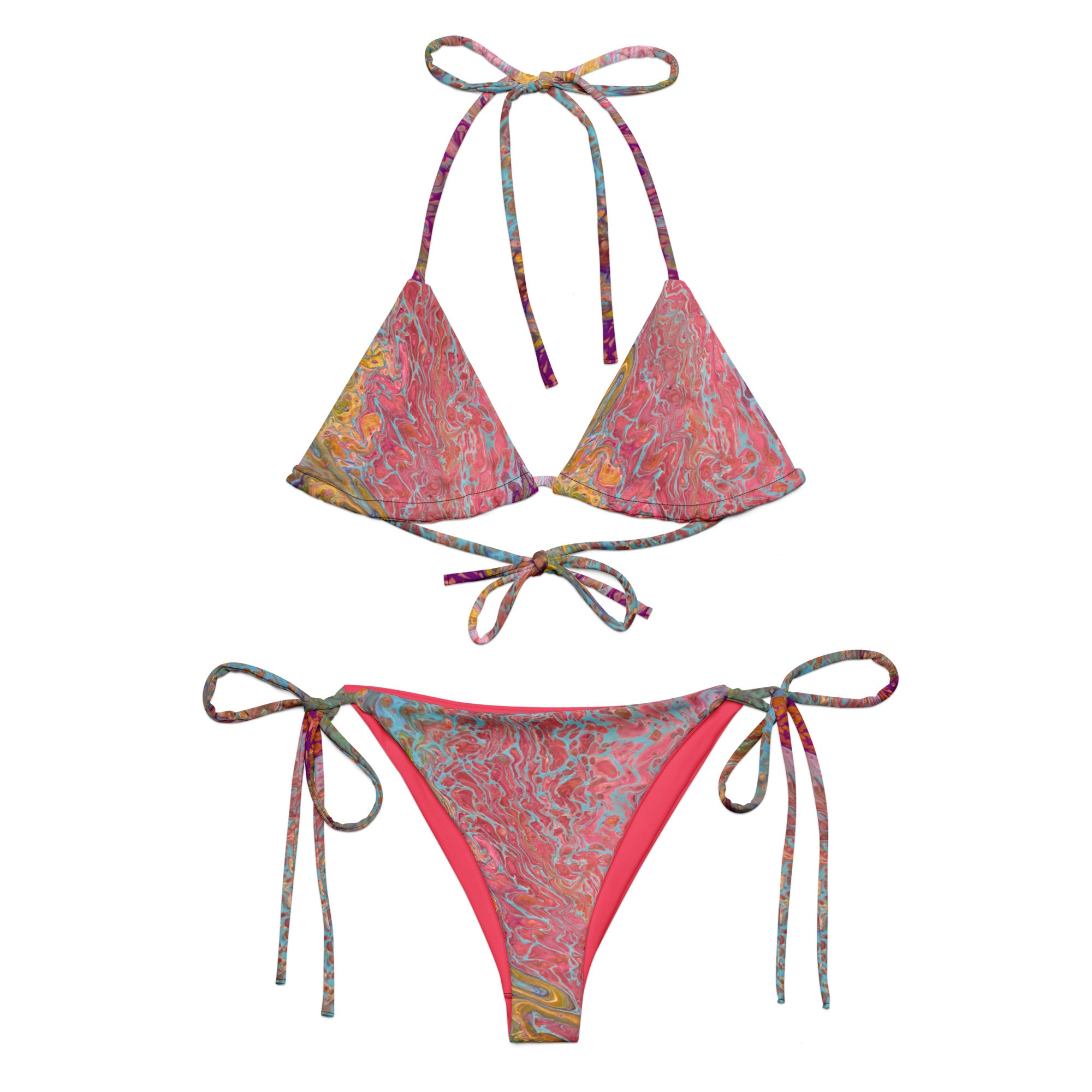 Care Instructions: To make your All-Over Print Recycled String Bikini last longer, thoroughly rinse it off after each use and get rid of any chlorine/salt residue.