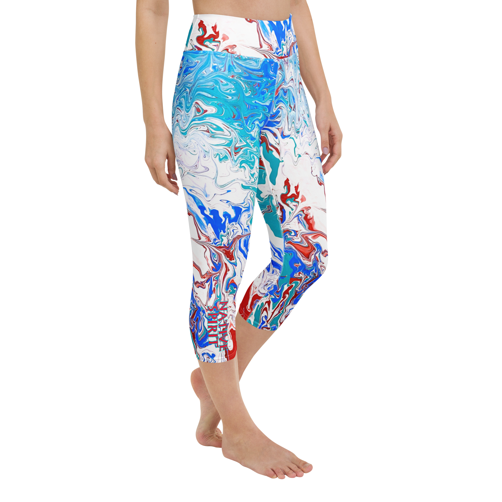 Yoga Capri Leggings Red White Blue